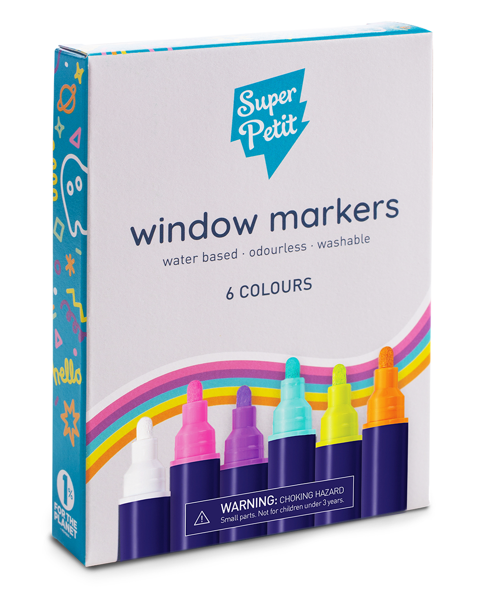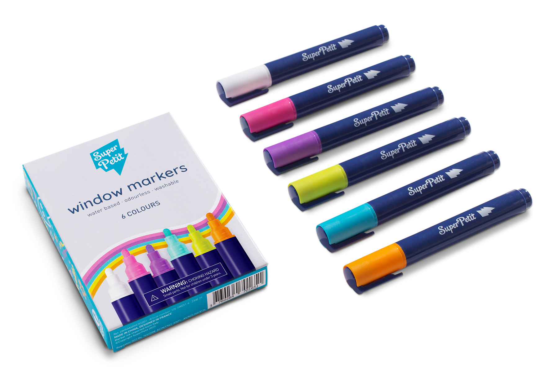 6 FEUTRES EFFACABLES POUR VITRES ET MIROIRS 6 feutres à l’eau lavables pour vitres et miroirs. Feutre extra large – pointe ronde 3mm