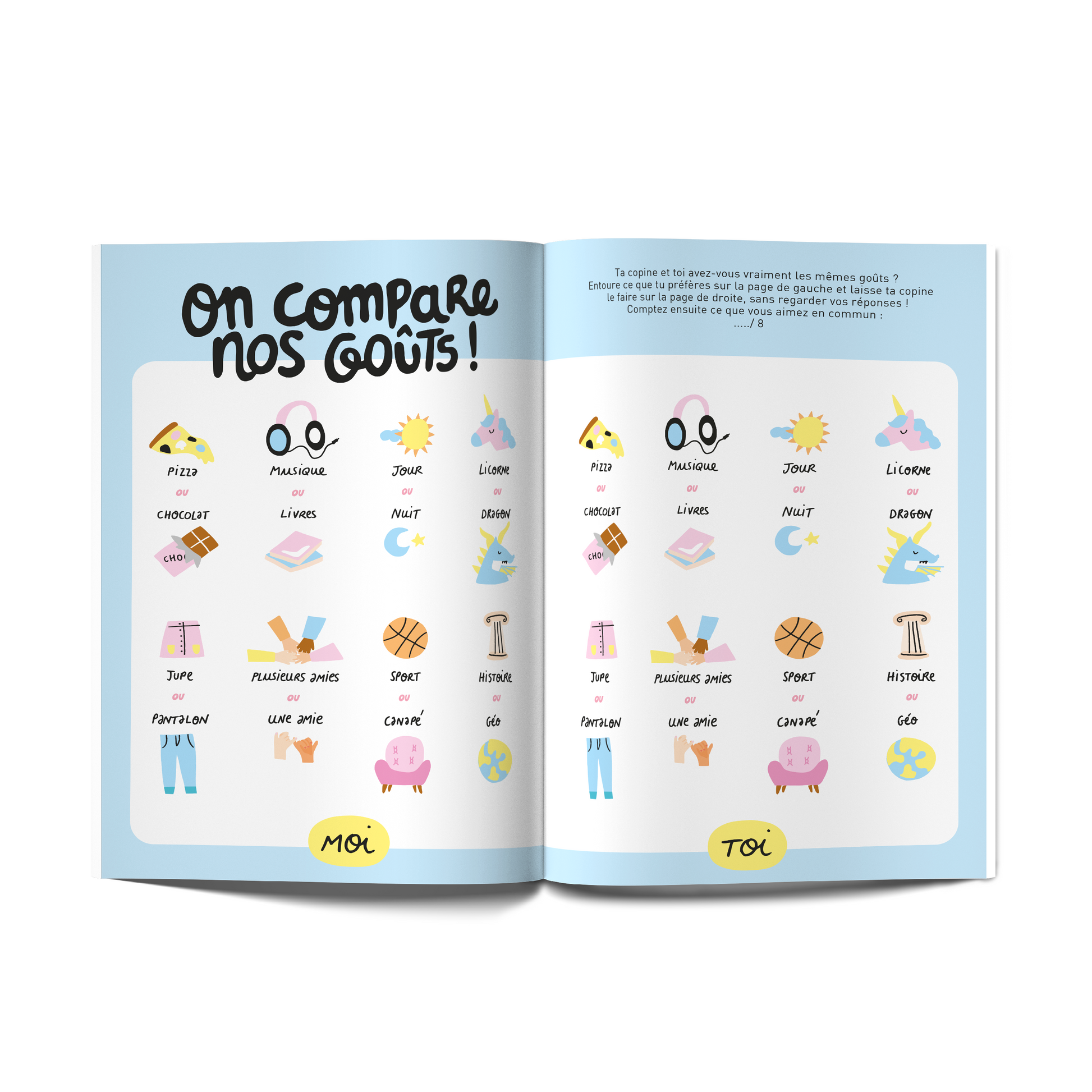 Avec ce cahier d’amitié pas comme les autres, fais ton portrait, celui de tes copines puis amusez-vous à vous découvrir en répondant au test d’amitié,