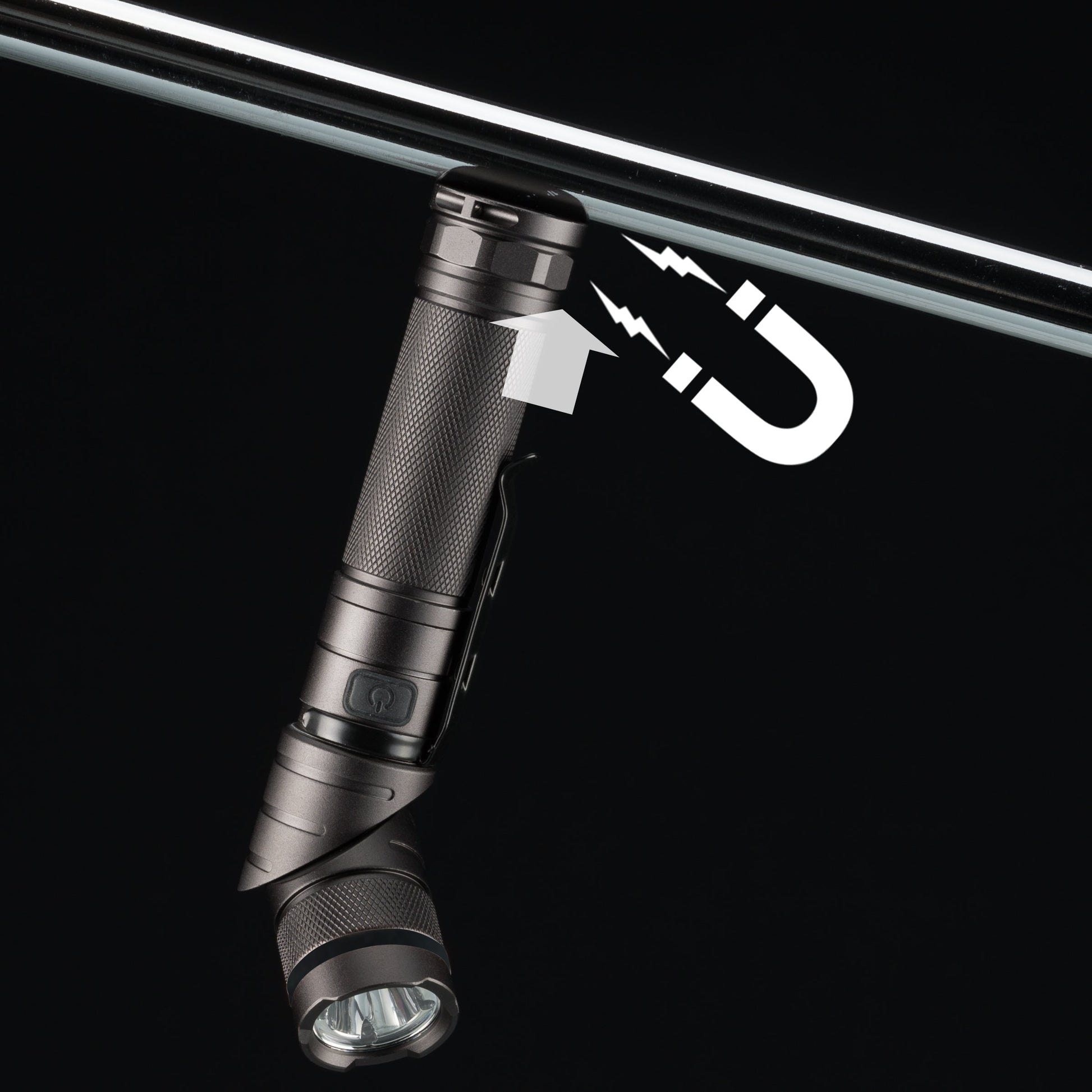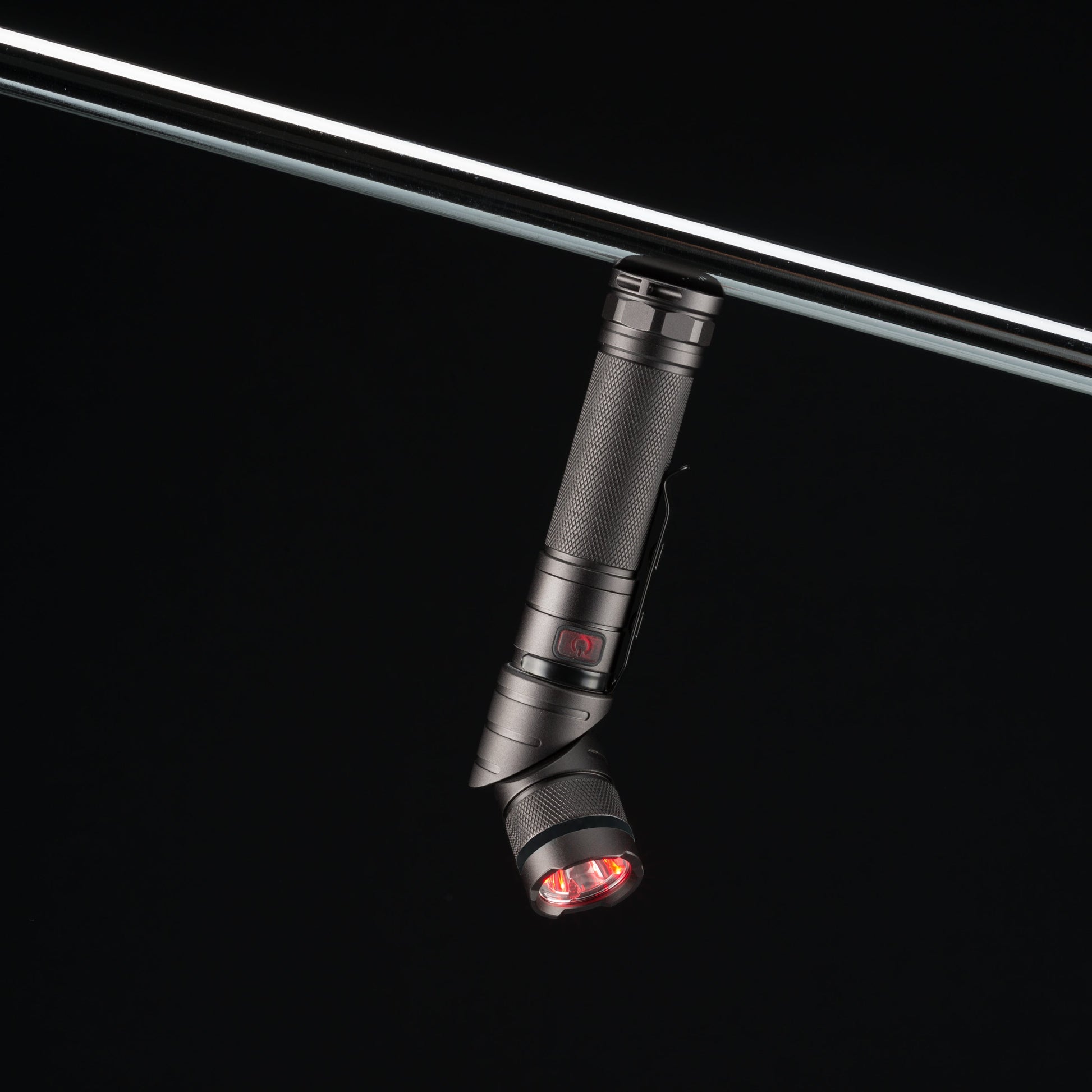 Grâce à sa base magnétique, elle adhère aux surfaces métalliques et, à l'aide de la tête qui peut pivoter jusqu'à 90°, elle devient une aide pratique même lorsque vous n'avez pas les mains libres ! Avec ses 9 modes de fonctionnement, elle s'adapte parfaitement à chaque besoin, que ce soit au niveau le plus lumineux en lumière blanche pour une visibilité optimale ou comme signal d'avertissement en mode clignotant en lumière rouge.