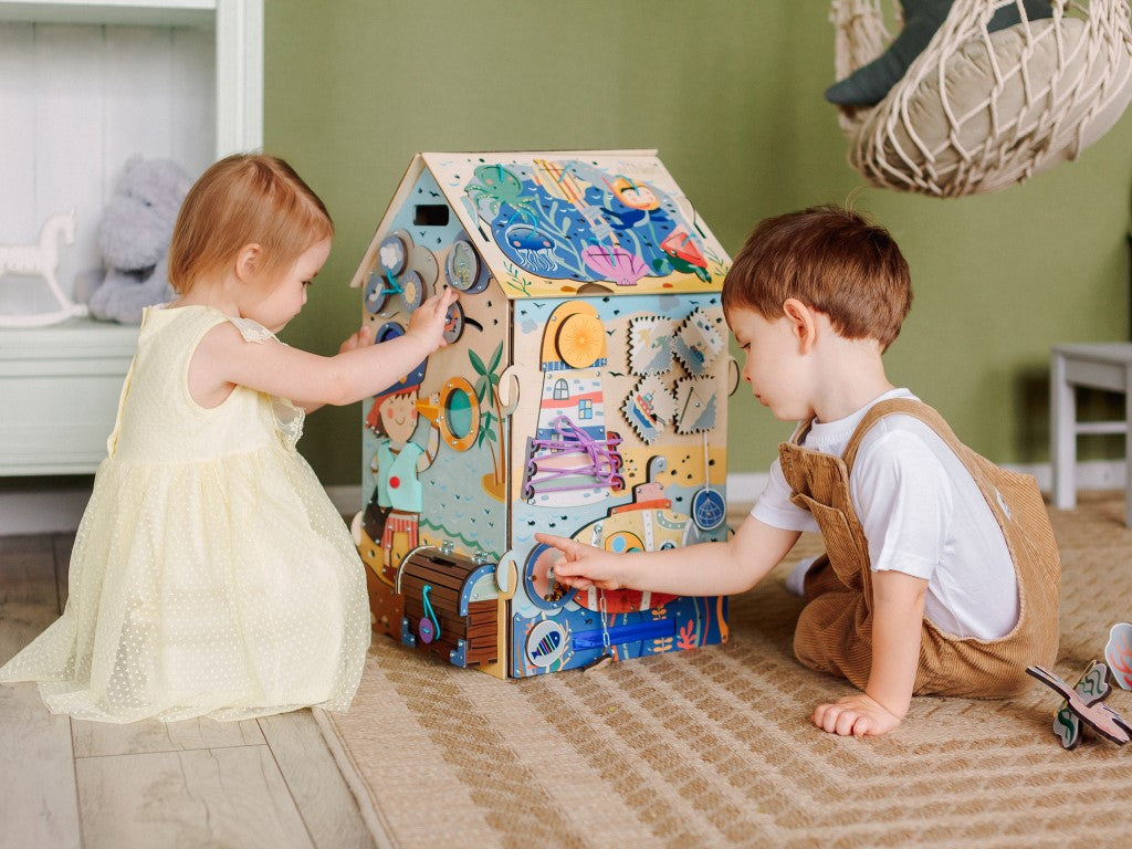 Le tableau d'activités avec éclairage LED offre d'innombrables possibilités de jeu et de développement des compétences. Découvrez la maison d'activités Pirate pastel.
