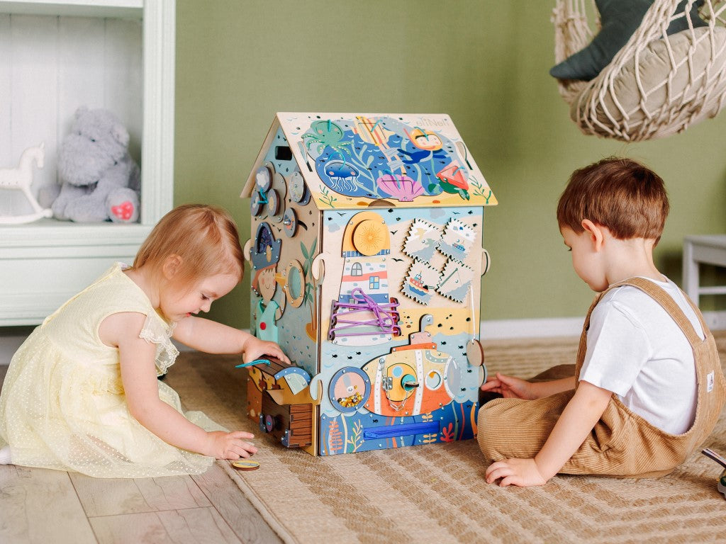 Le tableau d'activités avec éclairage LED offre d'innombrables possibilités de jeu et de développement des compétences. Découvrez la maison d'activités Pirate pastel.