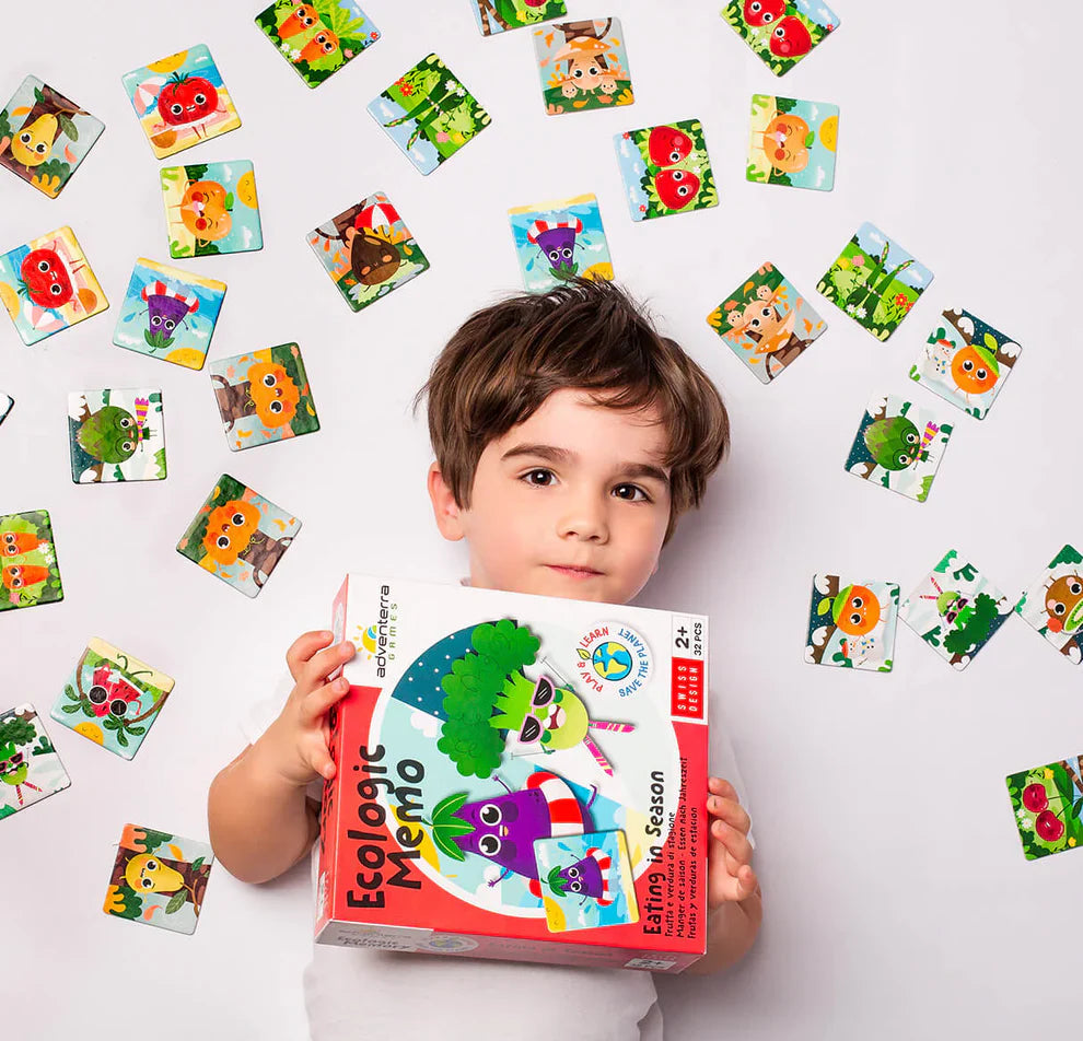 Avec ce jeu de mémoire certifié STEM, les enfants apprennent que les aliments sains et frais sont à la fois bons pour leur corps et pour la planète ! Les cartes solides représentent de jolis fruits et légumes, avec des fonds colorés qui indiquent la saison la plus propice à la consommation de chaque aliment.