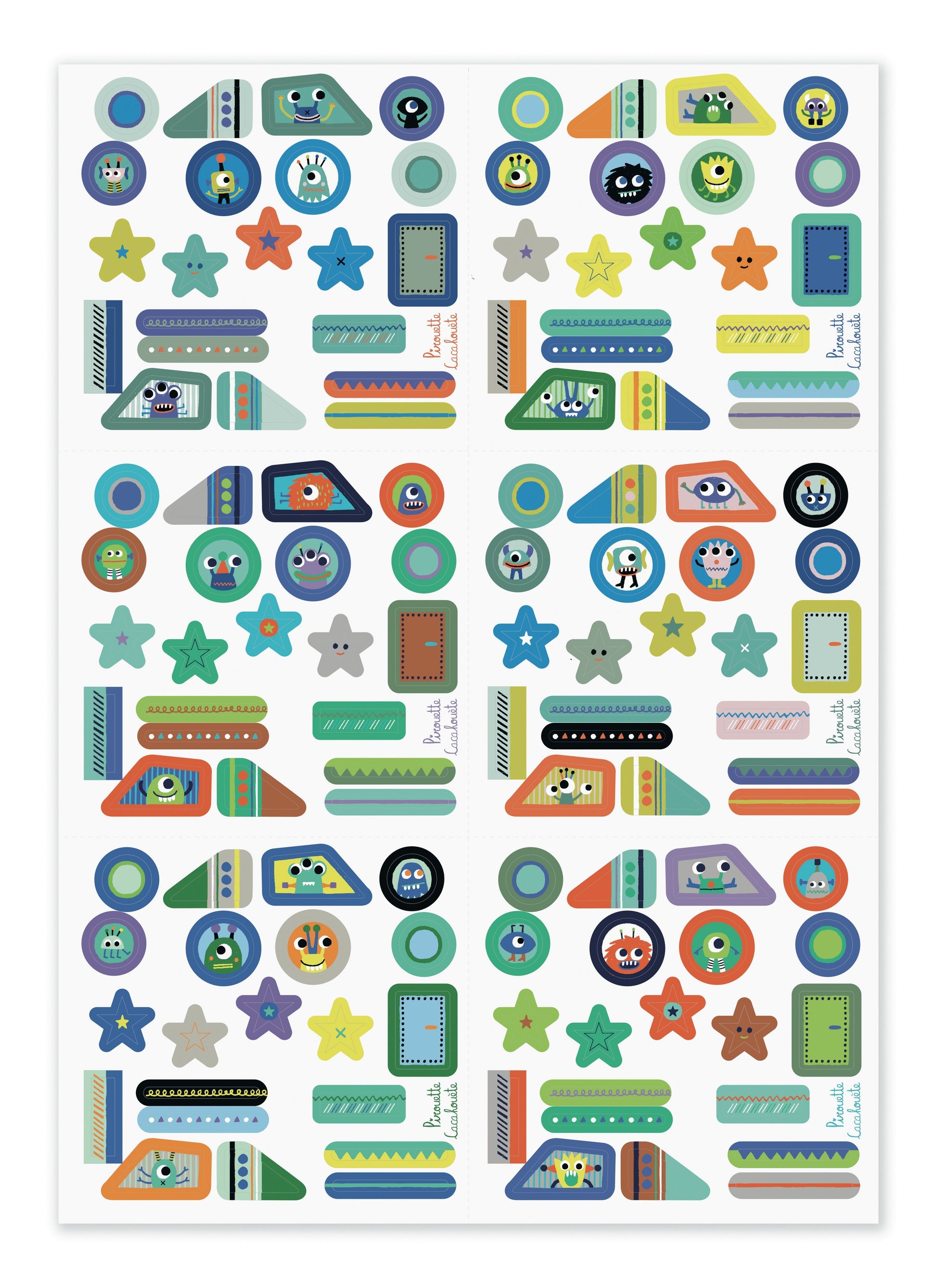 "Découvrez une activité artistique sans besoin de colle ou de ciseaux. Assemblez simplement quelques pièces de carton et vos fusées sont sur le point de s'envoler. Remplissez-les avec une joyeuse bande de petits extraterrestres, qu'ils soient verts, bleus ou roses, chacun plus amusant que le précédent ! Certains hublots vierges sont prêts à être personnalisés avec un simple crayon ou feutre. Préparez-vous pour une aventure intergalactique !"