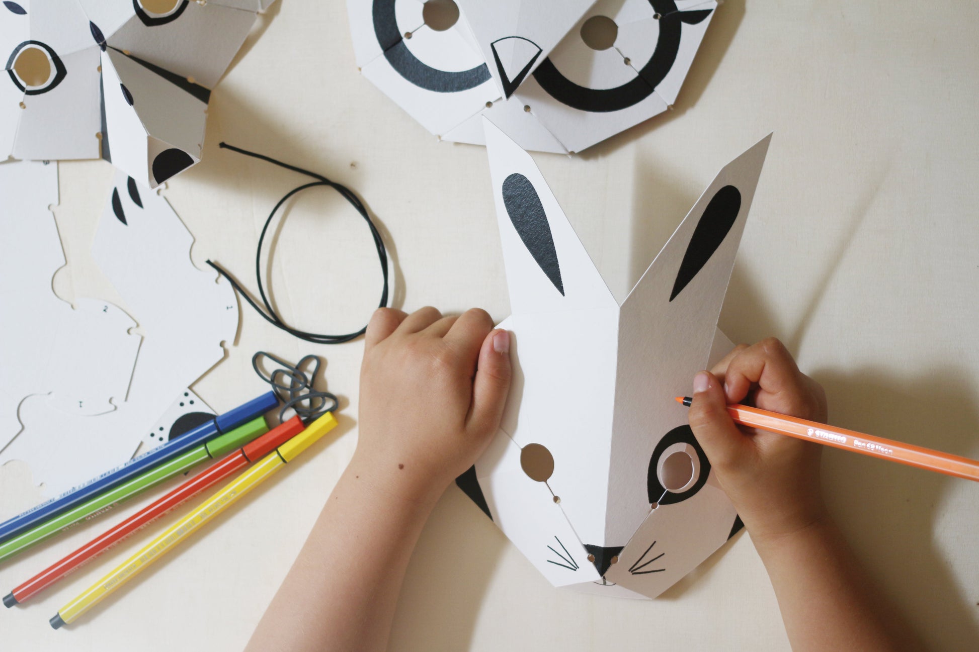 "Grâce aux élastiques du système innovant Elastiblock®, chaque masque se monte astucieusement sans avoir besoin de colle ou de ciseaux ! Une fois assemblé, il n'attend plus que ta touche personnelle par le coloriage ou la peinture. Alors, quel est ton animal de prédilection ? Opteras tu pour le renard, le lapin, le hibou ou l'ours ?"