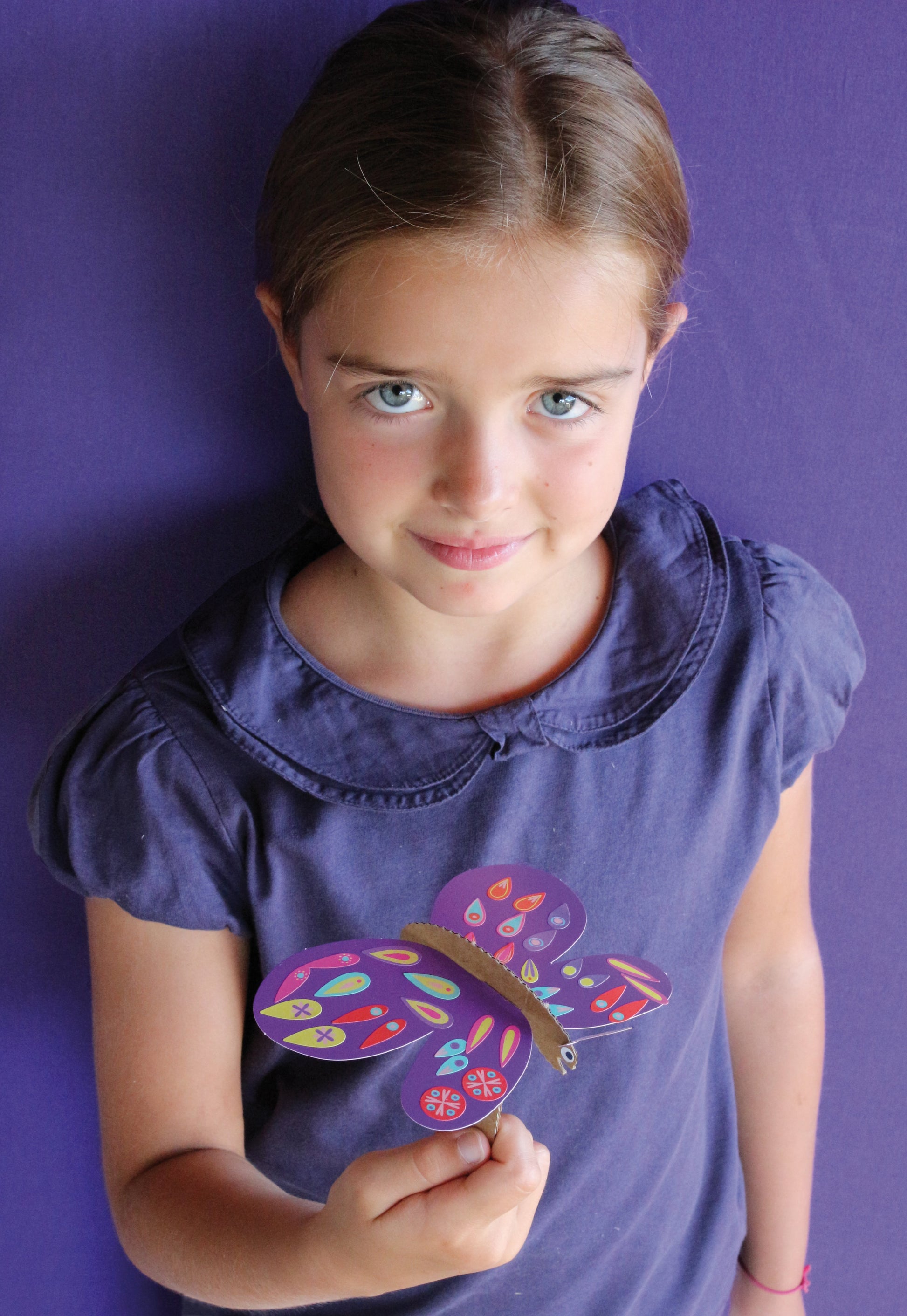 "Découvrez un atelier vibrant de gaieté et d'éclat. En mariant le papier au carton, un papillon s'épanouit, prêt à s'illuminer de ses teintes autocollantes. Il s'anime sous les doigts agiles qui le font virevolter. Envole toi, gracieux papillon !"