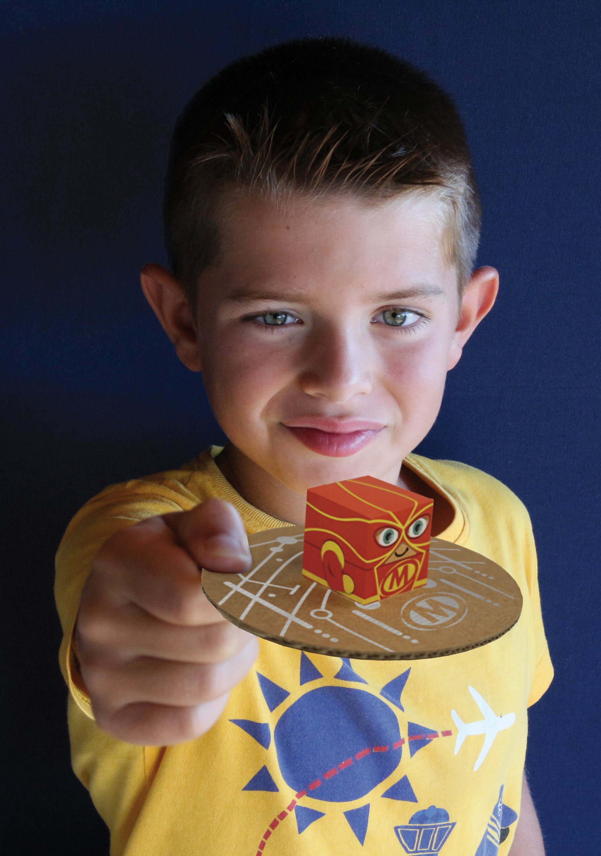 "Avez vous déjà entendu parler des exploits de ces super héros venus d'ailleurs ? Lancez dans le cosmos une flotte de 5 soucoupes volantes accompagnées de leurs super héros, et laissez libre cours à votre imagination pour leurs péripéties ! 3, 2, 1... Cap sur l'infini et au delà !"