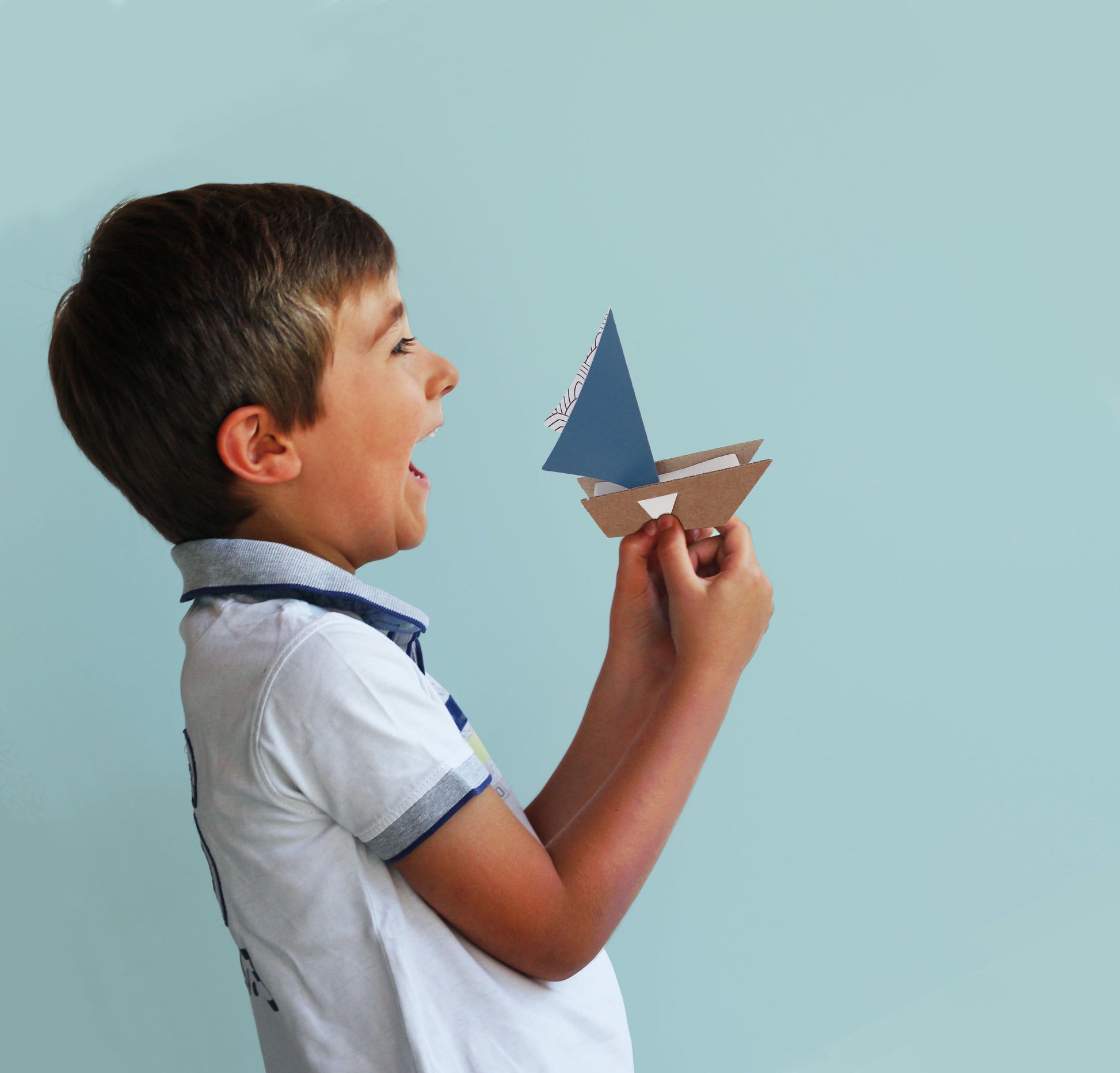 "Découvrez une activité artistique sans besoin de colle ni de ciseaux. Grâce à un montage astucieux, réalisez 6 charmants voiliers en papier et carton, prêts à être décorés par coloriage ou peinture. Et pourquoi pas organiser une régate en soufflant sur les voiles ? En avant, hissez les voiles !"