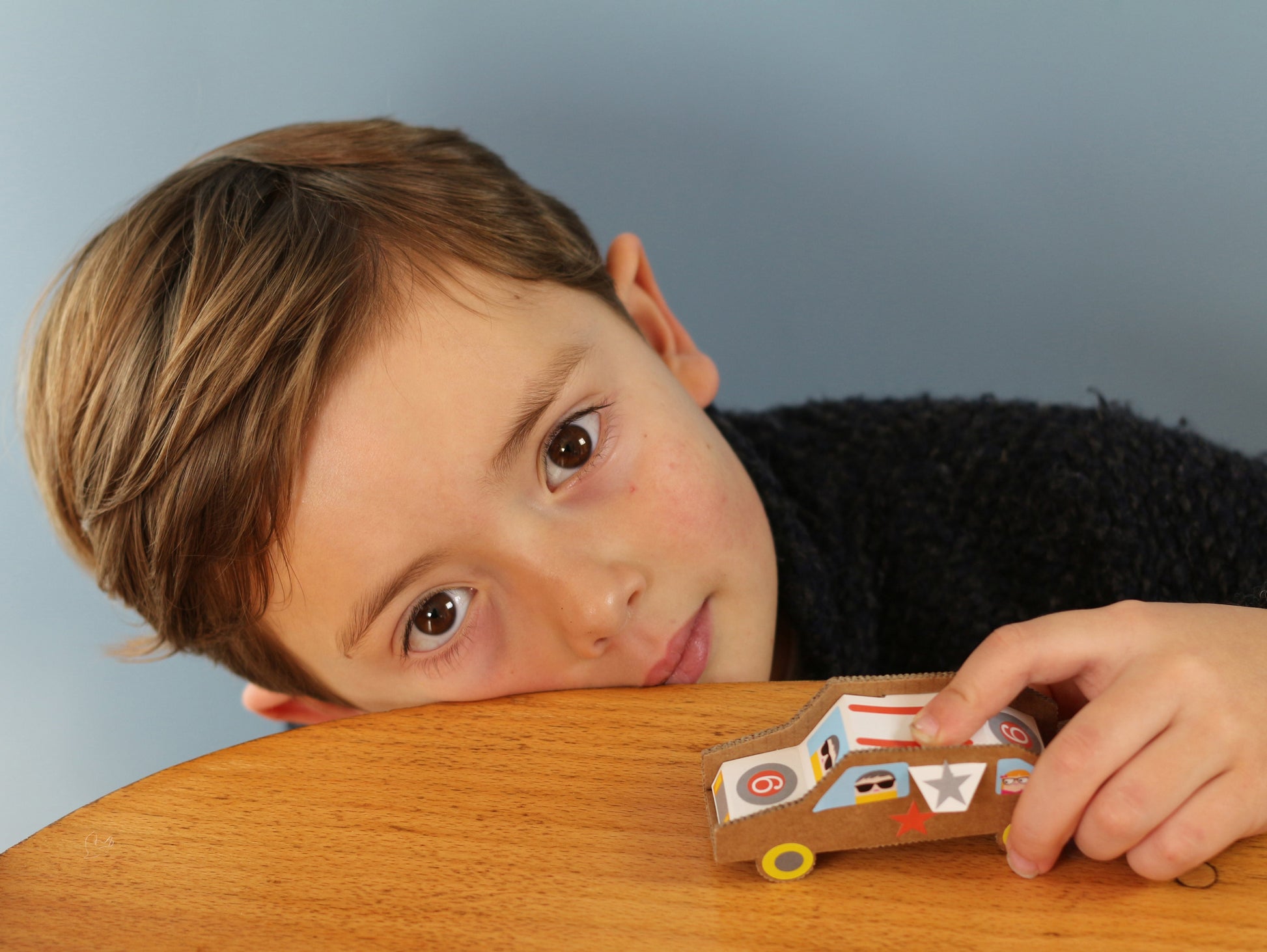 "Plongez dans un atelier bourdonnant de plaisir, à partager entre amis ou en famille. En combinant papier et carton, créez une élégante voiture rétro prête à être personnalisée avec les autocollants fournis. VROOOOM, c'est parti pour l'aventure sur quatre roues !"