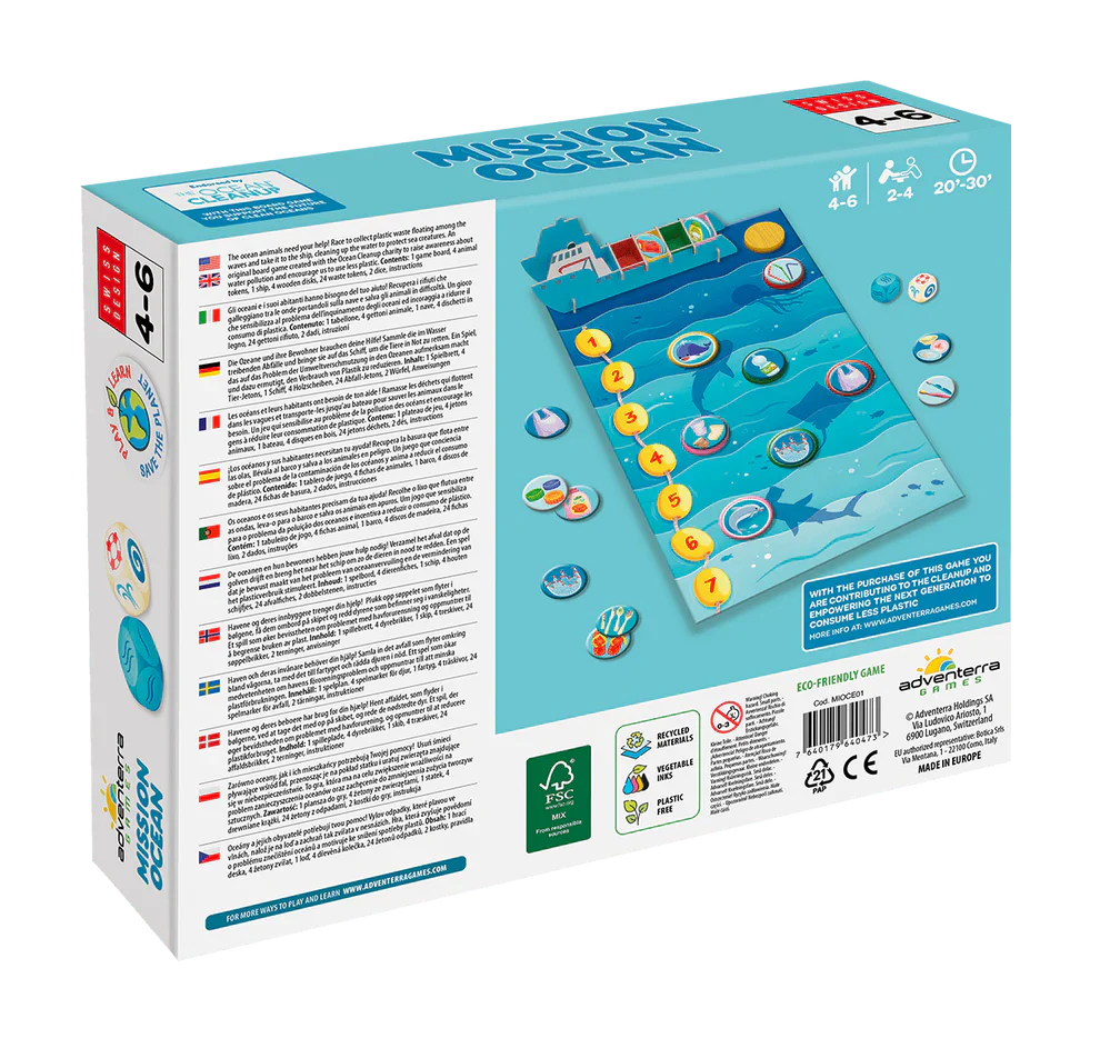 Les animaux de l'océan ont besoin de notre aide ! Dans cet adorable jeu de société, les joueurs font la course pour collecter les déchets plastiques flottant parmi les vagues et les amener au plus vite au navire. Cela permet de nettoyer l'eau et de mettre les animaux marins en sécurité. Une partie des recettes des ventes est reversée à l'association à but non lucratif The Ocean Cleanup afin de soutenir directement leurs efforts sur le terrain.
