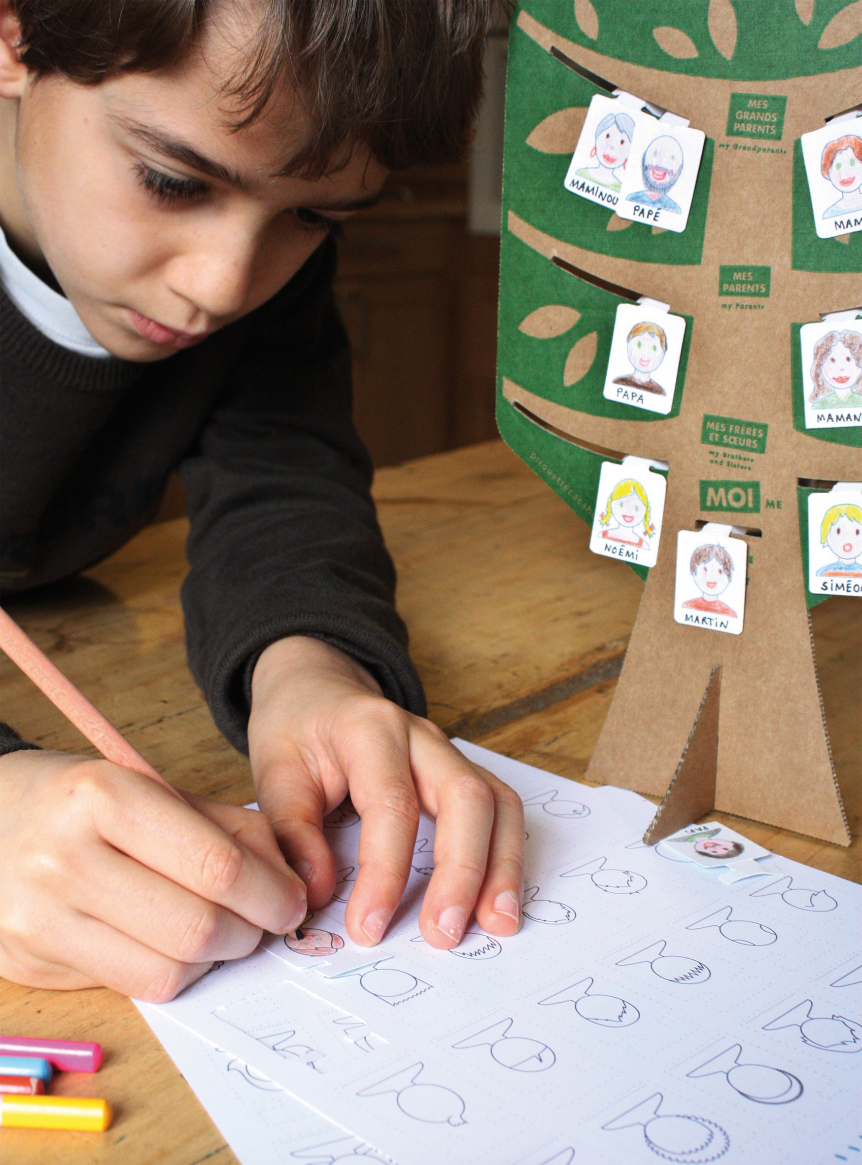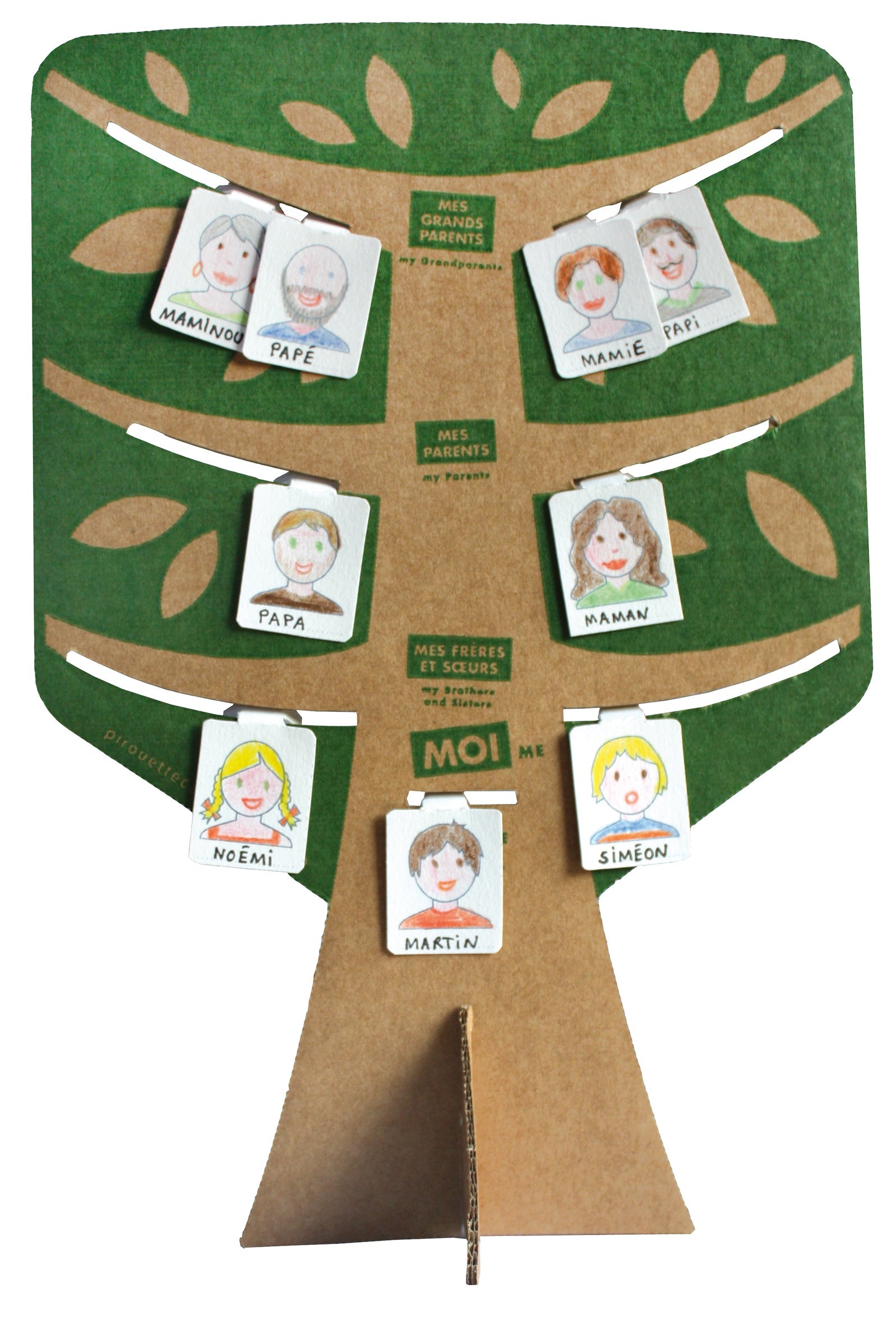 "Un jeu éducatif qui aide à comprendre sa place au sein de sa famille, qu'elle soit traditionnelle ou recomposée. Partagez un moment unique entre différentes générations. Parmi 50 portraits illustrés, identifiez ceux qui évoquent le plus vos proches, colorez les pour les personnaliser, puis placez les sur les branches appropriées de l'arbre généalogique."
