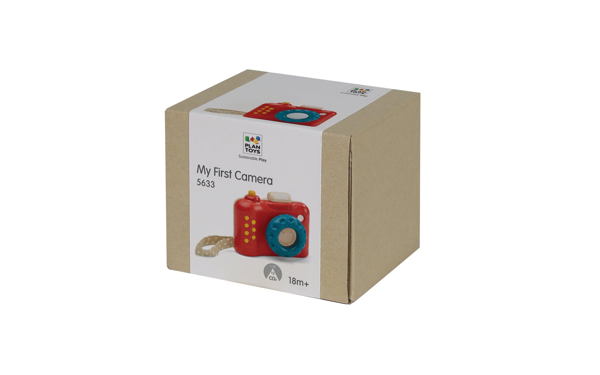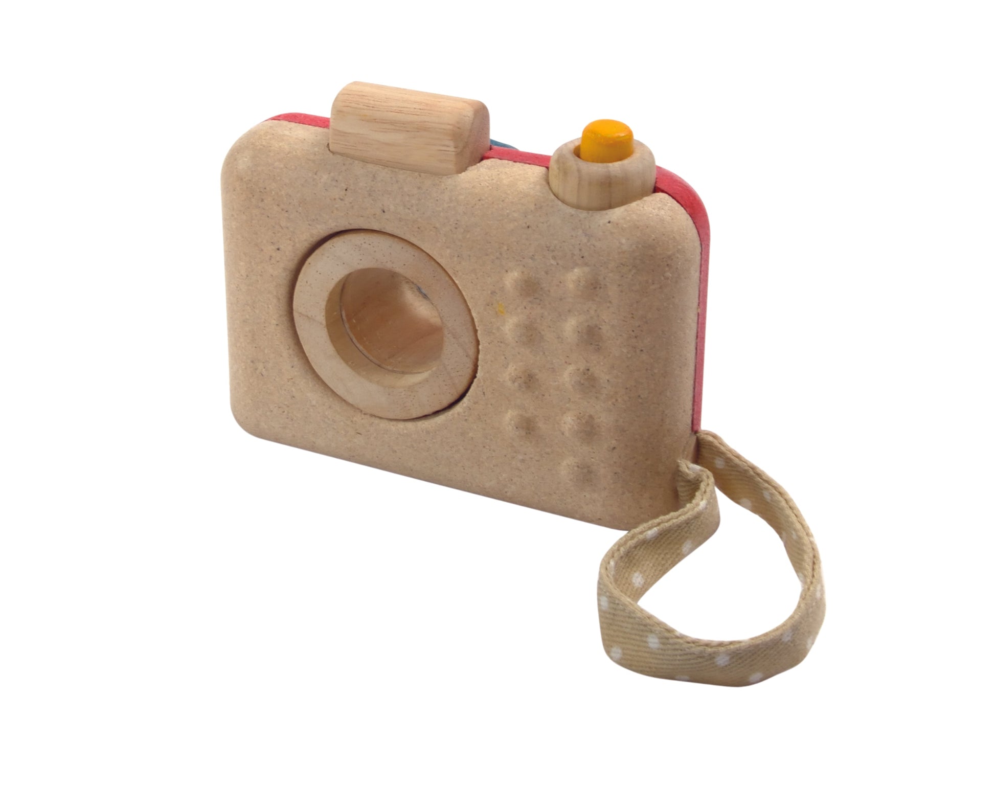 Clic clac ! Les enfants adorent faire semblant de prendre des photos ! Avec ce premier appareil photos Plan Toys, il leur suffit d'appuyer sur le bouton déclencheur pour voir défiler plein de belles images à travers le kaleidoscope. La bague de mise au point tourne comme une vraie ! Conçu en PlanWood. A partir de 18 mois.