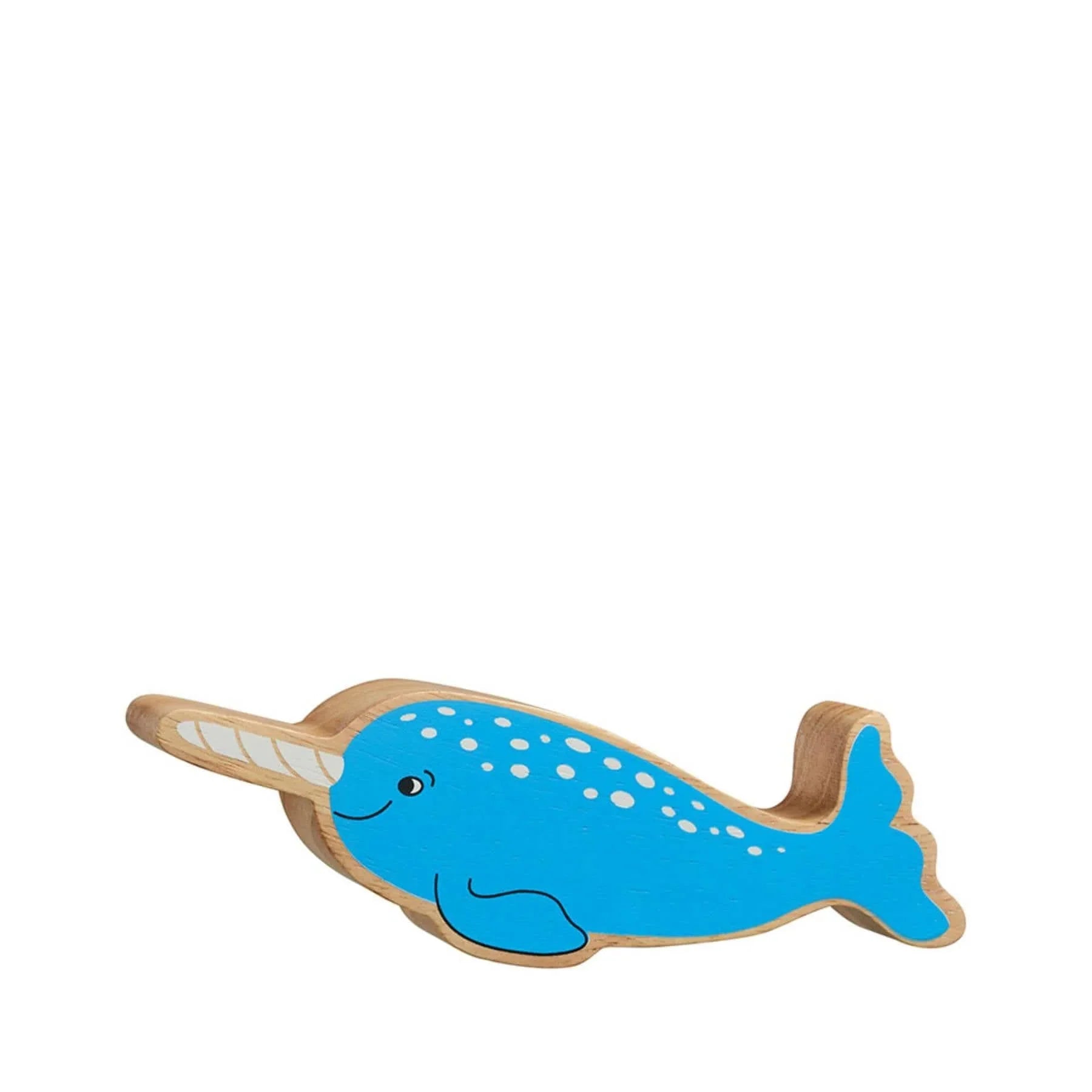 Une figurine de narval bleu en bois naturel et colorée, parfaite pour les petites mains. Ce gros animal marin bleu est idéal pour empiler, trier, mettre des sacs à histoires et plus encore !