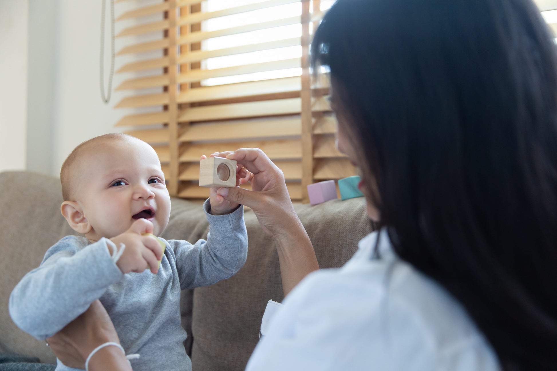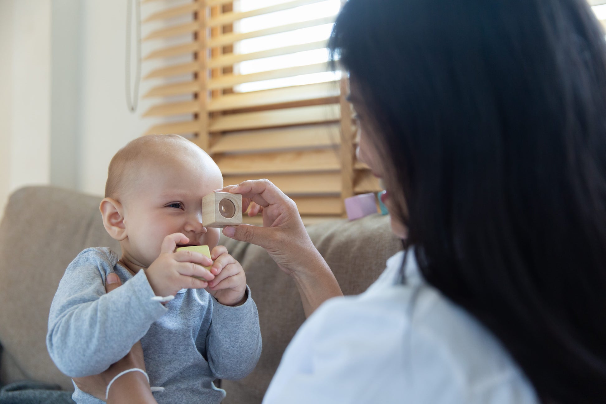 Ensemble de neuf blocs sensoriels avec différentes textures, sons et couleurs. Dans un sachet en toile de coton.