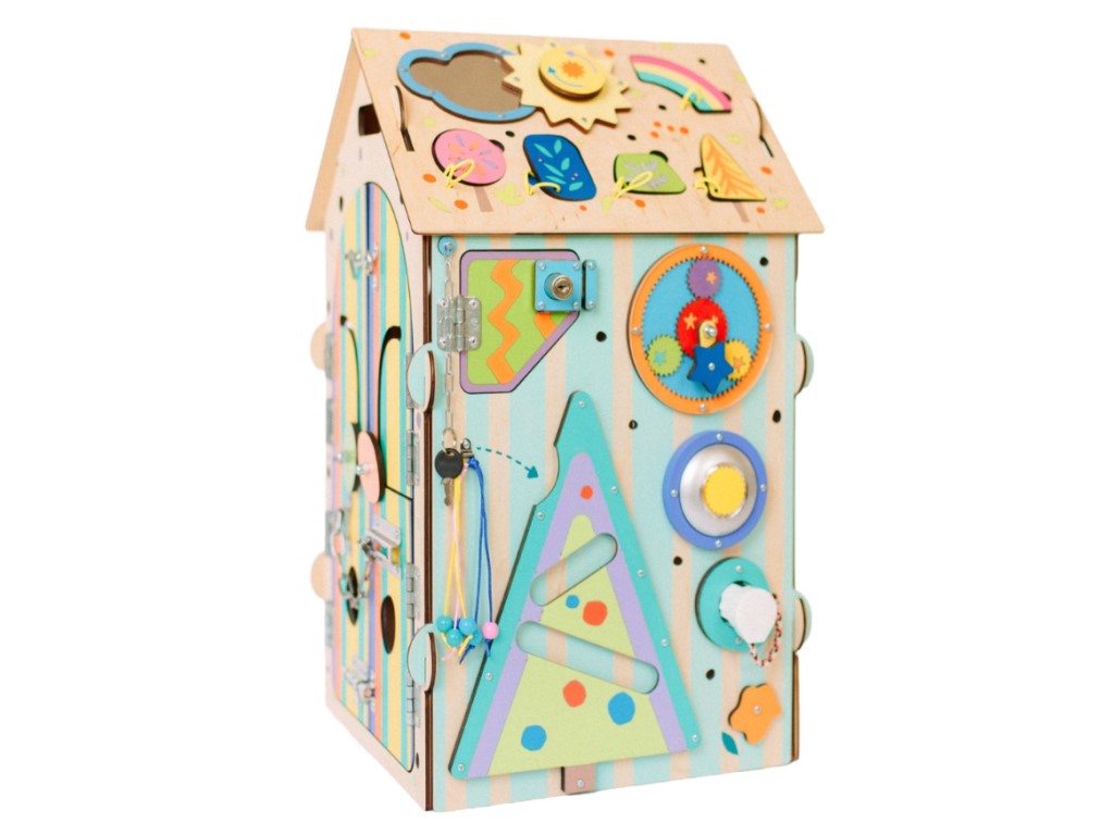 Le tableau d'activités est une maison contenant de nombreux jouets et offre d'innombrables possibilités de jeu. Jetez un coup d'œil aux éléments ludiques et Montessori du tableau d'activités.